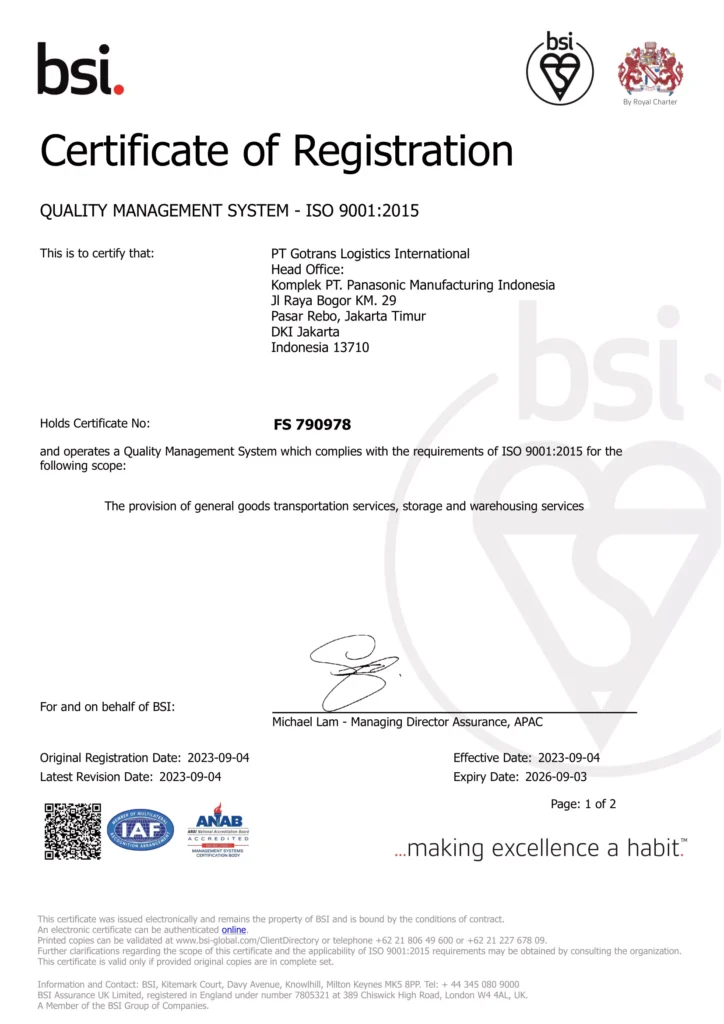 Recognized by international standards, we deliver logistics services built on trust and reliability.